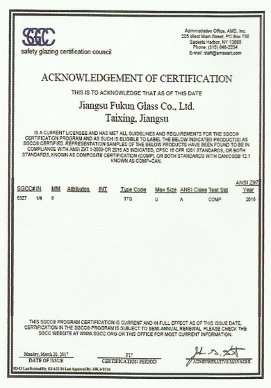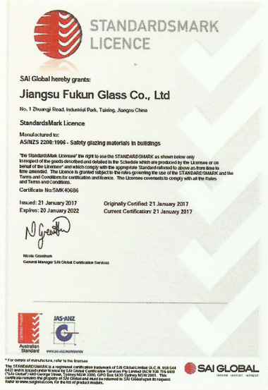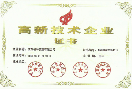 江蘇福坤新材料科技有限公司始創于2007年,總部設在江蘇省泰興市城區工業園莊基路1號,是蘇中地區玻璃深加工行業最具競爭力的企業之一。 近年來公司產品通過了CQC中國質量認證中心3C認證、ISO9001:2008質量體系認證、美國SGCC安全認證、澳洲STA標準認證、綠色工廠認證等。目前公司有18項技術和產品獲得了國家專利,有3種產品獲得了國家節能產品認證?!?/p>