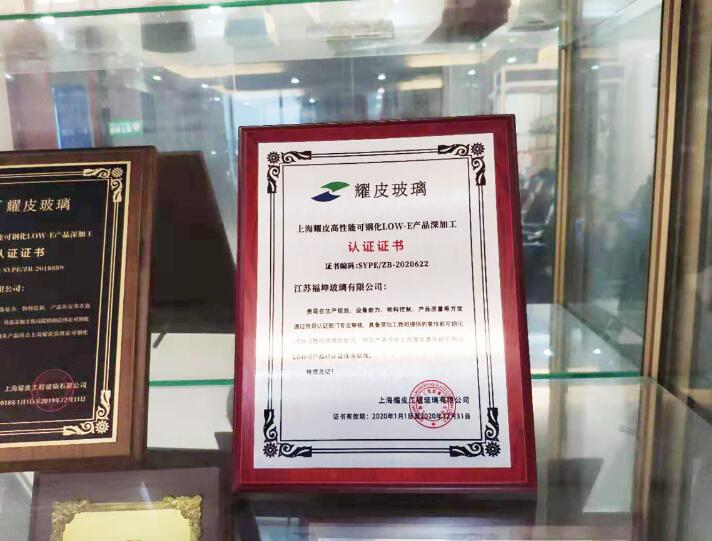12月28日,我司獲得上海耀皮頒發(fā)的高性能可鋼化LOW-E產(chǎn)品深加工認證證書。