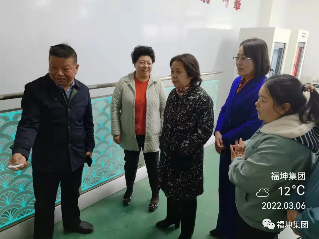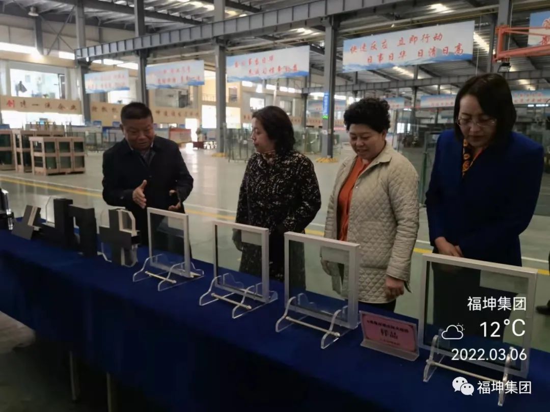 黃海燕主席在洪總和我司婦女代表的陪同下,參觀了我司企業文化長廊、生產線,聽取我司防火玻璃、電梯防火玻璃、冷月光玻璃、熱鏡中空玻璃等新產品研發生產情況介紹。