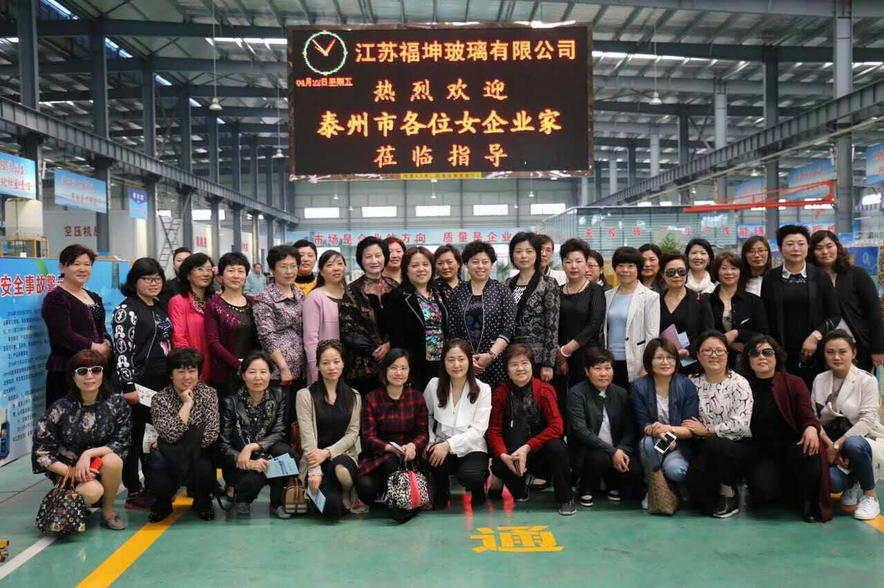 泰州市女企 業 家協會是受泰州市婦聯領導的,用于搭建泰州女企 業 家之間的溝通、交流與合作發展的新平臺,帶動更多女性投身“大眾創業,萬眾創新”熱潮,為加速泰州經濟社會持續健康發展作出更大貢獻而建立的女性企 業家協會組織。洪愛萍總經理是協會副會長。東廠門口,迎賓彩旗獵獵作響,“創業創新促轉型,開 放進取爭優爭先”的標語分外醒目。在洪總的主導下,公司袁總及行政、銷售部門參與接待的同志列隊歡迎嘉賓們的到來,行政部呂燕做向導和解說員,向諸位領導簡要介紹了我司創建過程、公司規模、主要產品、企業文化建設心得、并帶領大家參觀了我司企業文化長廊、生產線,東廠區參觀結束后,洪總陪同婦聯、女企 業家協會領導們趕往西廠區,又參觀了我司產品展廳,在綜合樓五樓多媒體會議廳進行了座談,嘉賓先觀看了我司企業宣傳資料片,觀賞了福坤司歌《捧出精彩》MV,洪總發表熱情講話,對婦聯、女企 業家協會各位領導和嘉賓們的到來表示熱烈的歡迎,并就她個人在創業創新創優方面的經歷和經驗做法以及福坤玻璃的企業發展歷程向嘉賓們作簡要匯報。座談于上午11時許結束。